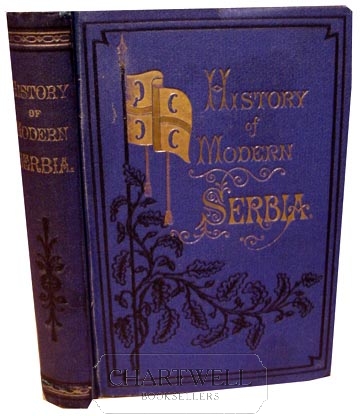 A comprehensive history of Serbia from 1804 to date of publication. Quite scarce. A very good copy, neatly rebacked, with the original darkened spine, cracked near tail, laid-on. Corners slightly bumped, small stain on rear cover, leaves very slightly browned in margins, gilt very bright. Believe issued without dust jacket.